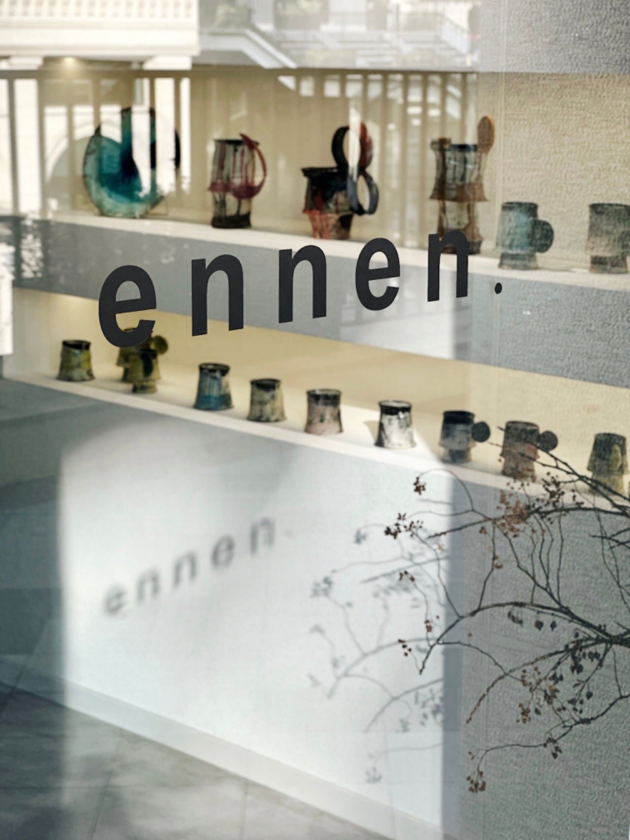 The shapes made by hand or on a potter's wheel are not bisque fired, but left to harden naturally. Once they have hardened to a certain degree, she uses a sponge to dab on the pieces in various colors. Then the pieces are finally fired in an electric kettle or gas kiln. By layering the colors multiple times, the color becomes deep and rich. Her beautiful pieces, created in places rich in nature, are imbued with her gentle, warm atmosphere. It can be used as a vase or interior decoration.